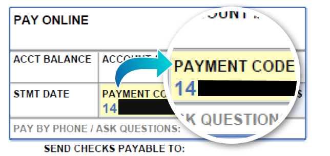 Just use the payment code from your statement.